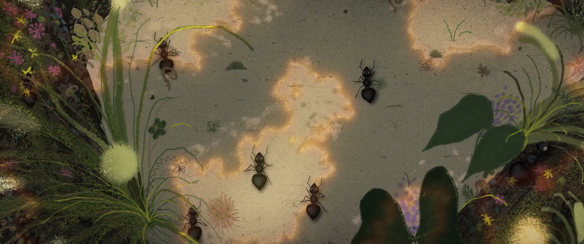 개미와 포자, 서로 다른 두 생명체가 미시세계에서 만나 새로운 여정을 시작한다. 이 비현실적이면서도 상징적인 조합은 곧 생명의 기원과 관계의 본질을 탐색하는 조용한 기록이 된다. 풍부한 색의 표현과 아름다운 이미지, 짧지만 깊은 여운을 남기는 이 작품은 우리 안의 작고 섬세한 세계에 귀 기울이게 한다.
